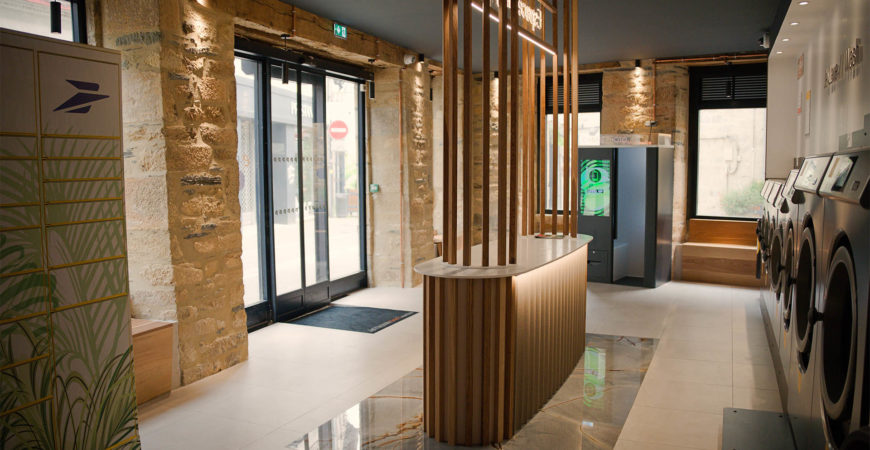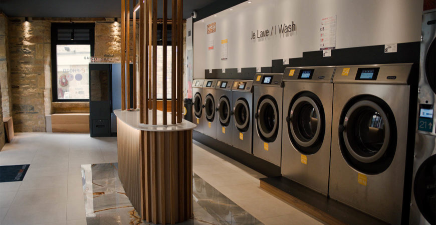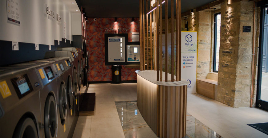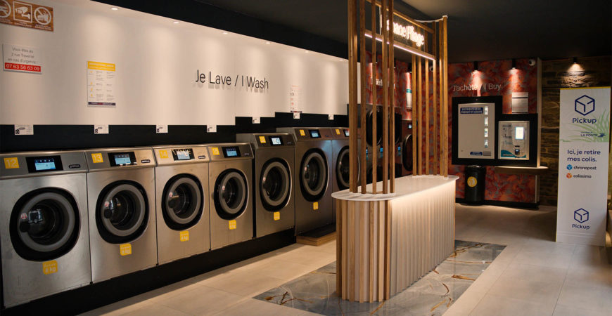 Idéalement située au coeur de la ville, élégamment aménagé et pensé comme un lieu multi-services, le nouvel Espace Lavomatique de Landerneau préfigure la laverie de demain.